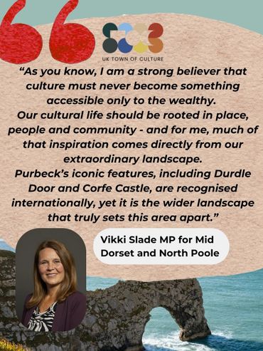 From local festivals and cultural organisations to businesses, local groups and residents, it’s clear there is a shared belief in the power of culture to shape Purbeck’s future. This growing chorus of support - which you can see across our social media - really reflects the pride people feel in this place and reinforces the ambition of our bid as we move forward.